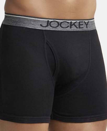 Jockey Men's Super Combed Cotton rib fabric Boxer Briefs with Front Fly, Ultrasoft and Durable waistband (Pack of 2) 8009_Black_L