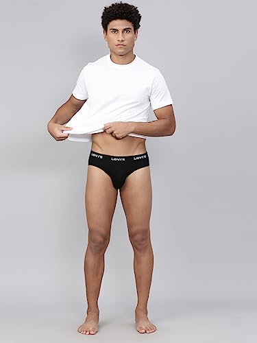 Levi's Men's Cotton Style #009 Neo Regular Fit Solid Brief (Pack of 2) (#009-BRIEF-BLK/NAVY-P2_Black,Navy_L)