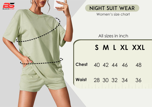 KSHS Women's Pista Green Cotton Printed Night Suit Set of Top & Shorts